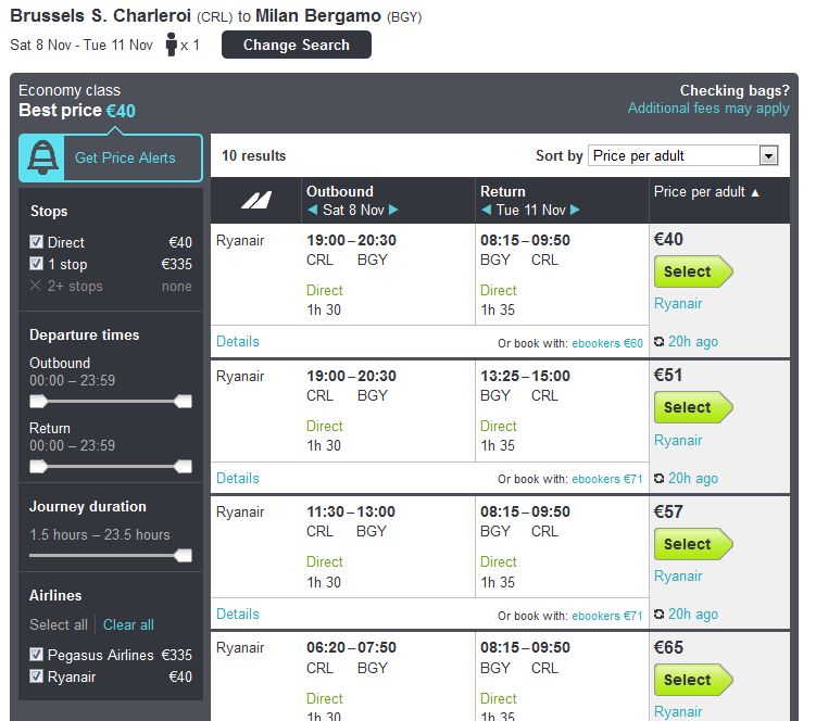 Screen 2: Poland? Norway? Greece? You’re spoiled for choice! The results are displayed from the cheapest to the most expensive destinations. Interested in a bit of dolce vita in Italy? Click on the price!