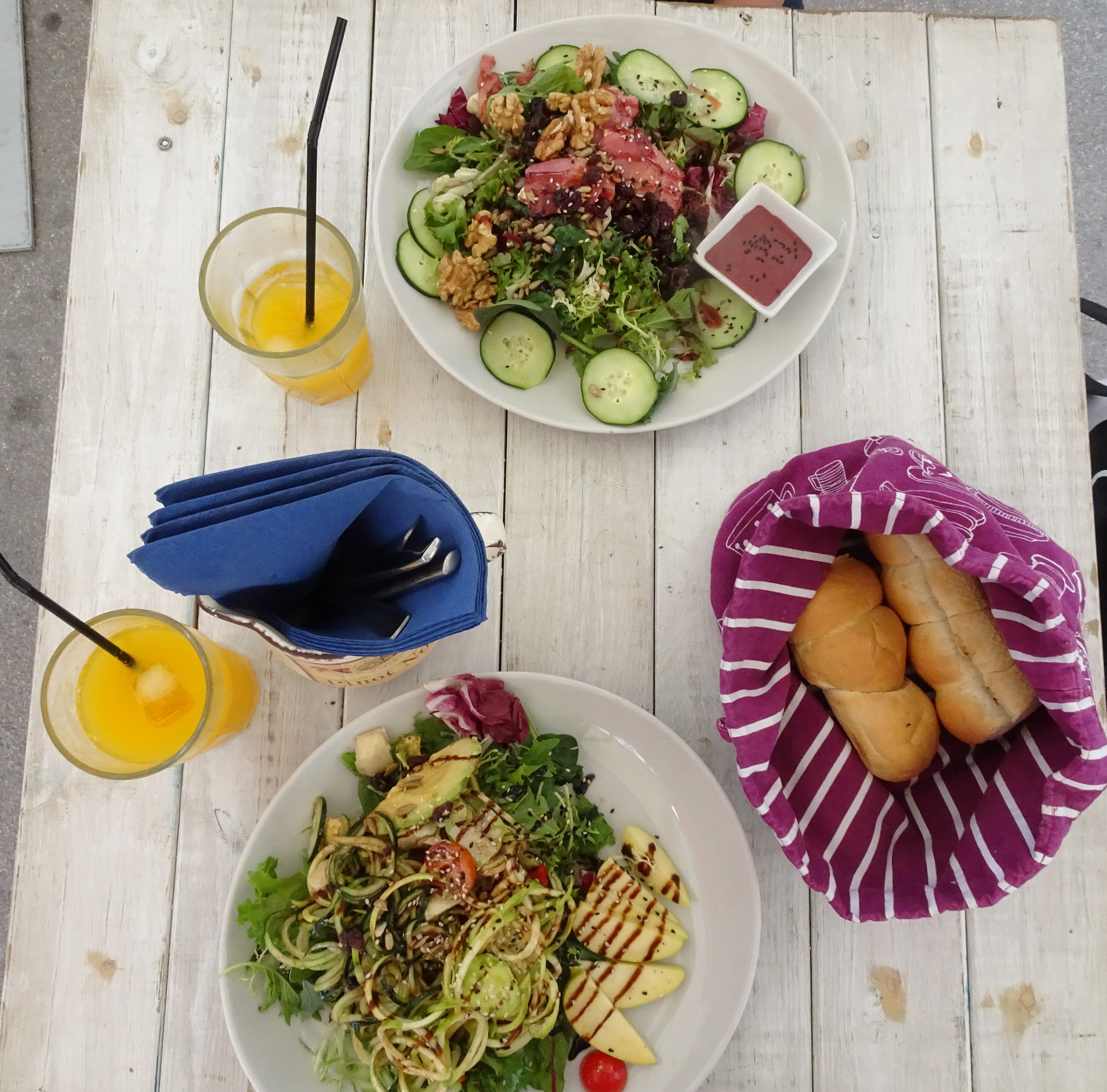 We escaped the busy beaches of Barcelona for a day in Sitges (about 45mins away from the city by train) where we also found some yummy healthy cheap food at La Perla Blanca (Passeig de la Ribera, 24). Although its location by the beach front could scare you away, you should stay! The service is very nice, the place very cute and even simple cucumbers become a real piece of art!