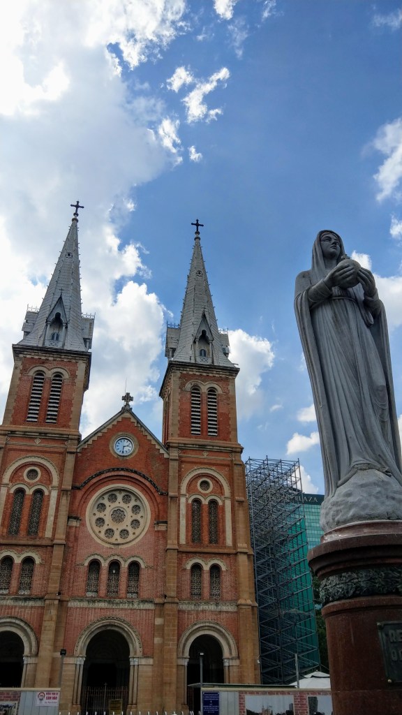 - City walk: We visited the main downtown landmarks in one afternoon: the Independence Palace (and its famous portal destroyed by the communists from North Vietnam), the Notre-Dame Cathedral Basilica of Saigon (apparently the one in Paris served as an inspiration for this one…), the central post office, the nice city hall, the Nguyen Hue avenue (the Champs Elysées of the city) and it view on the Bitexco tower. Nothing amazing but worth the walk.