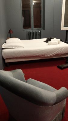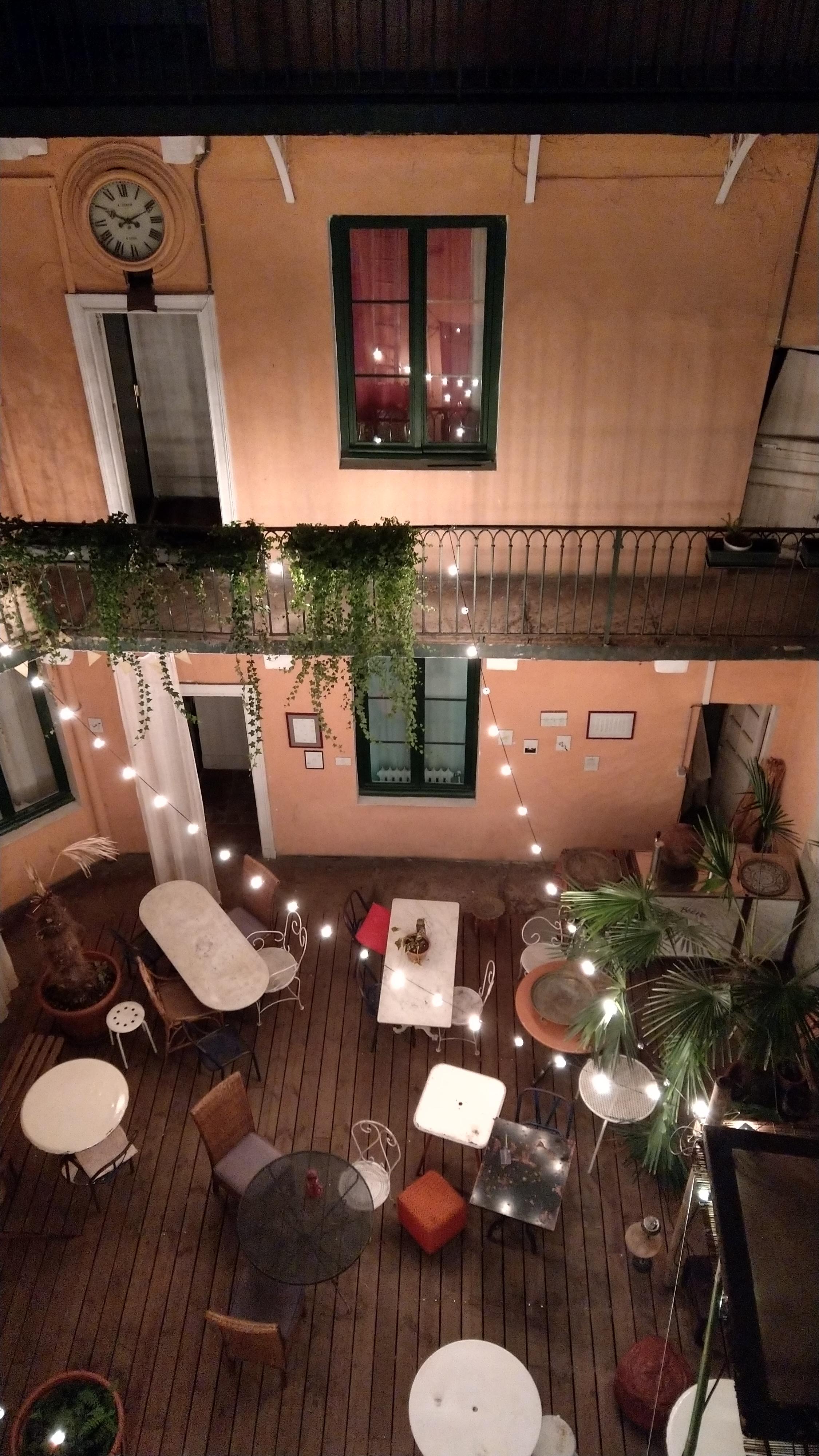 I arrived late on Thursday night and my best friend could only join on Friday so I decided to spend a night in a hostel. I had booked a bed in a 4-bed female dorm in the H36 hostel near the town hall. I arrived around midnight. When entering my room, I heard a voice whispering “We are already 4 here…”. I was thus upgraded to a single room with my own bathroom: yay! And check out the lovely patio!