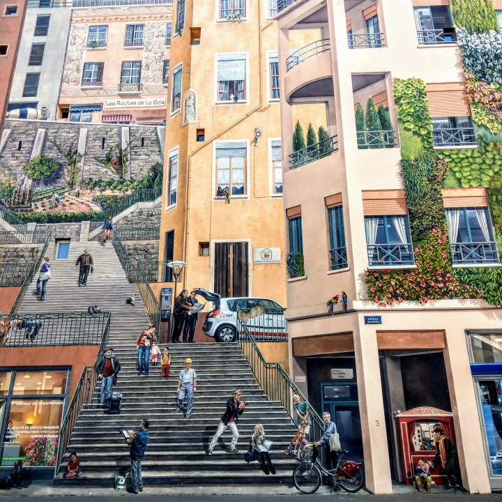 • Croix-Rousse: a cute and hilly neighbourhood you will discover to go and see the famous an biggest mural in Europe: Le Mur des Canuts. Go hunting for the famous traboules in Lyon. They are sorts of small alleys that link two streets through a building via a courtyard. Very picturesque!