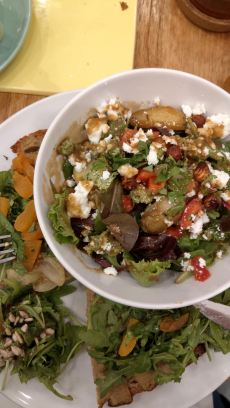 • Brunching in Lyon: We were told that Les Cafetiers was the place to brunch on a Sunday… and it was! We started with some banana bread, delicious pastries, a choice of hot drinks and a local appel juice and we continued with a choice between a salad or a granola together with a savery toast. 23€! And we couldn’t move afterwards!