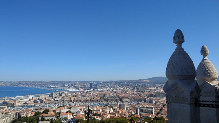 - Notre-Dame de la Garde basilica with its beautiful view on the whole city and the seaside. You can reach it with a touristic mini train, the bus 60 form the old port or by foot via the Montée de l’Oratoire. One thing is pretty clear: you won’t be alone up there!