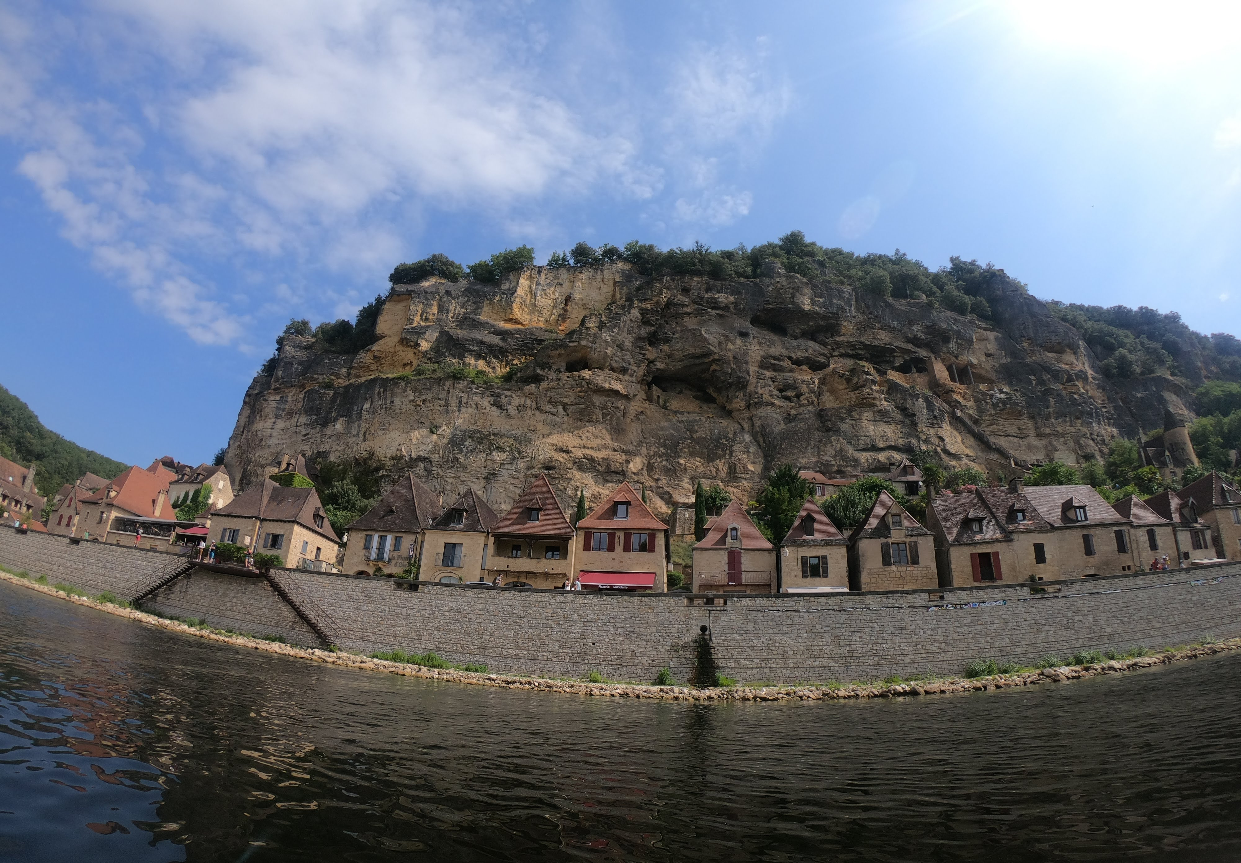The scenery is really fantastic on this route: first La Roque-Gageac, elected one of the most beautiful villages in France, and its houses hidden in the cliffs and the magnificent cargo barges.
