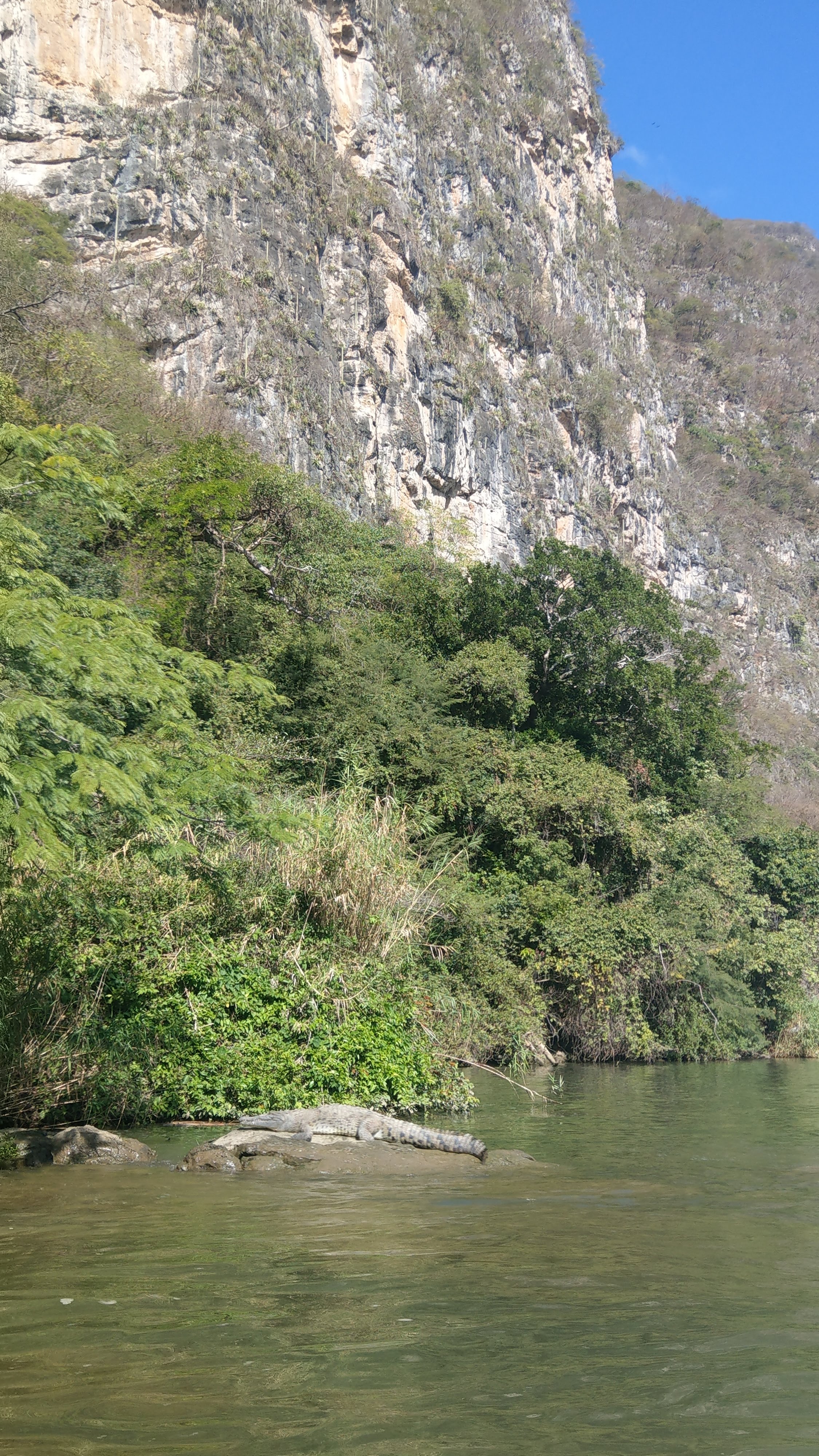 We took a taxi (18€, pre-booked inside the airport) straight to Chiapa de Corzo to take a boat ride on the Cañon del Sumidero. After quite a bit of waiting (but that was probably our most regular activity during our trip), our boat (about 13€ pp) left for about two hours in the very beautiful canyon. We saw many crocodiles, some spider monkeys from far away and some impressive cliffs. A nice ride!